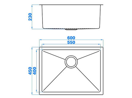 型號:5179款式:單盆安裝方式:臺底式總尺寸:600*450 mm大盆:550*400*230 mm