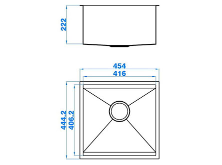 型號:5160款式:單盆安裝方式:臺底式總尺寸:454*444 mm大盆:416*406*222 mm