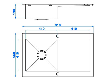 型號:5171款式:單瀝水板單盆安裝方式:嵌入式總尺寸:910*560 mm大盆:410*410*190 mm